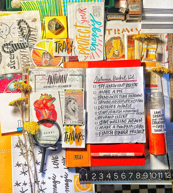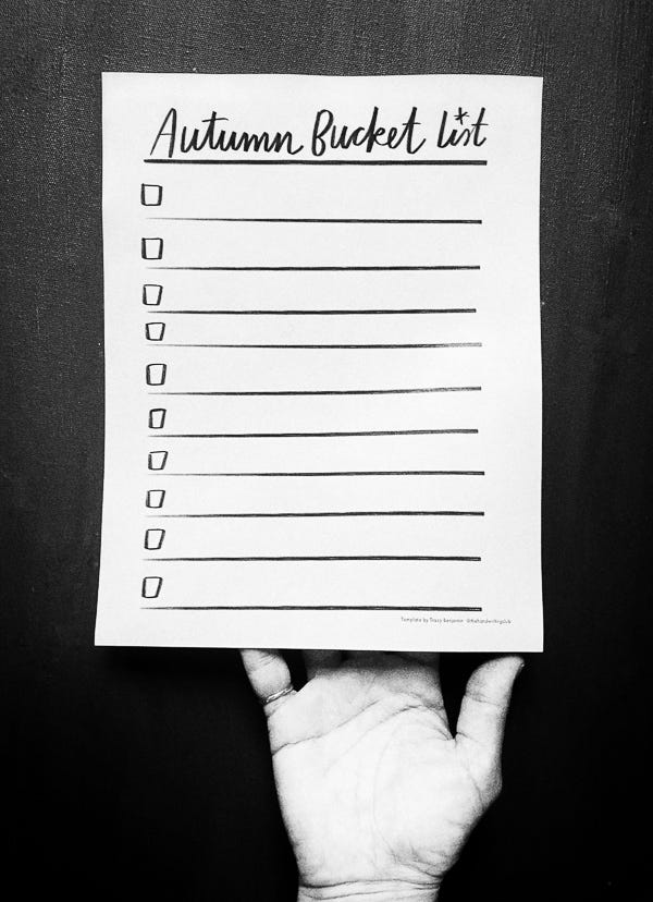 Tonight, we will be working on our Autumn Bucket Lists together. We are going to map out how we want to spend the next season.
