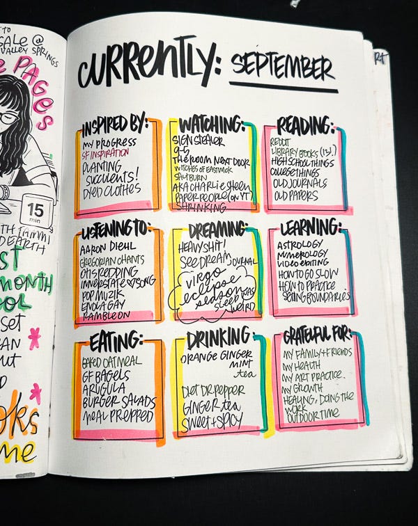 Here are my pages from my Currently Workbook for September. You can watch them unfold in this video below!