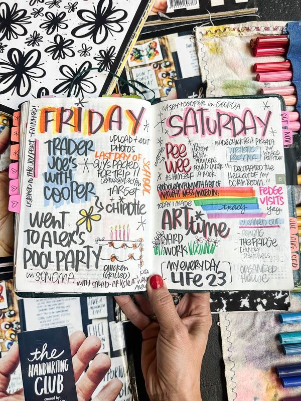 It’s turned into a daily journal/planner/sketchbook. Sometimes I make TO DO lists (when it’s at my desk in the mornings). Sometimes it’s a full-on art spread. Honestly, I’ve never used it the way it was originally intended, and that’s what makes it magic.