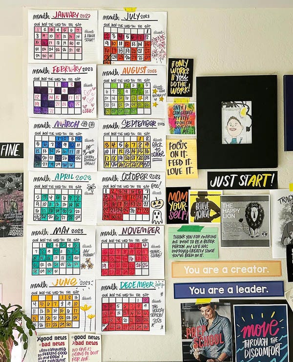 I use this calendar to track my workouts. This template is actually in the back of my Intentions for the Week Planner. I color in every day I intentionally move my body. This template helped me create a workout routine back in 2022!
