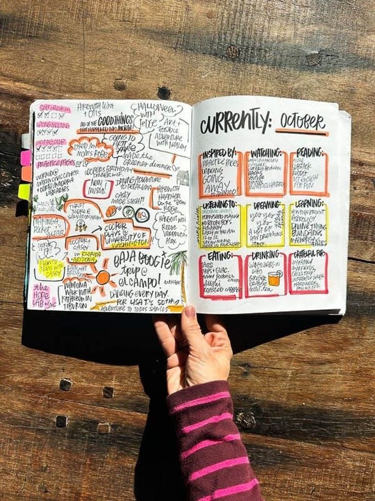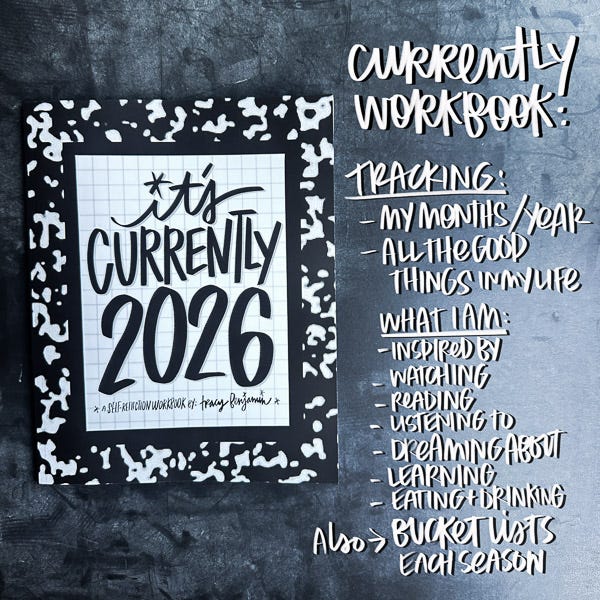 If you’re here and subscribed to my Substack, you probably already know about my Currently Workbook. I made my first workbook in 2019 and have kept the practice going ever since. It’s my art, my calendar, and my journal all in one. It’s how I check in with myself, track my life, and practice art. If you like my handwriting or how I decorate things, I owe much of that confidence in mark-making to my workbooks. What an incredible journey it’s been!